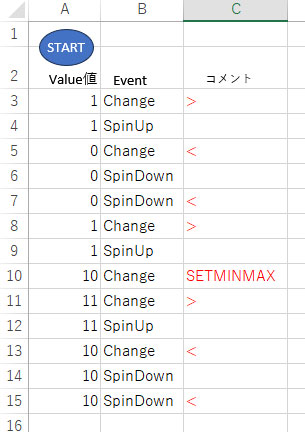 ① Value 値が変化した場合にのみ、SpinUp / SpinDown に先だって Change イベントが発生する。