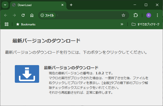 End Subときどきこのマクロを実行して、最新バージョンが用意されているかどうかをチェックし、必要ならダウンロードするという手はずになります。