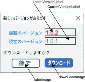 新しいバージョン番号は、サーバー上のファイル(ここでは仮に "https://castfactory.org/version.txt" としています)に記載しておいて、それと自身のバージョン番号を照合する、という手順です。